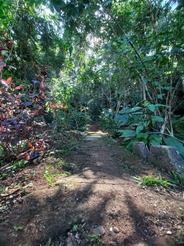 O Grupo Entre Folhas mantém no quintal da sua casa sede a Coleção de Plantas Medicinais, cultivando diversas matrizes de espécies nativas e exóticas adaptadas. O quintal é local de conservação in situ da agrobiodiversidade local. O manejo deste quintal é agroecológico, buscando manter a saúde do solo e das plantas através do equilíbrio do agroecossistema, mantendo a biodiversidade, utilizando apenas práticas orgânicas (capina, cobertura do solo, poda, plantio direto) e, quando há necessidade de intervenção, insumos adequados como homeopatias e microrganismos eficientes.